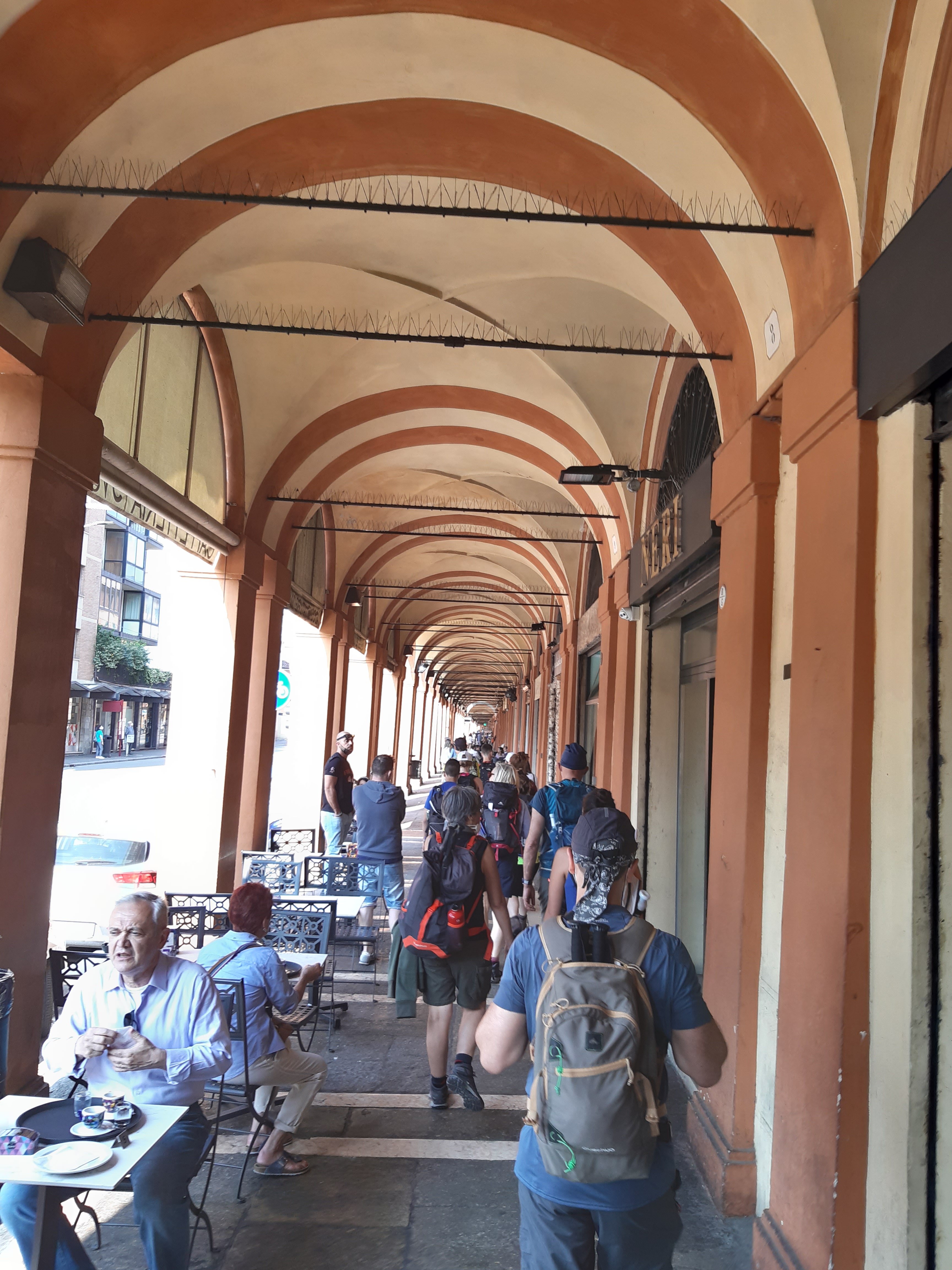 Si inizia con il timbro delle credenziali presso ufficio turistico di Bologna per proseguire fino la porta Saragozza dove inizia il porticato più lungo del mondo 666 archi per una lunghezza fino ad arrivare a San Luca 4 Km .