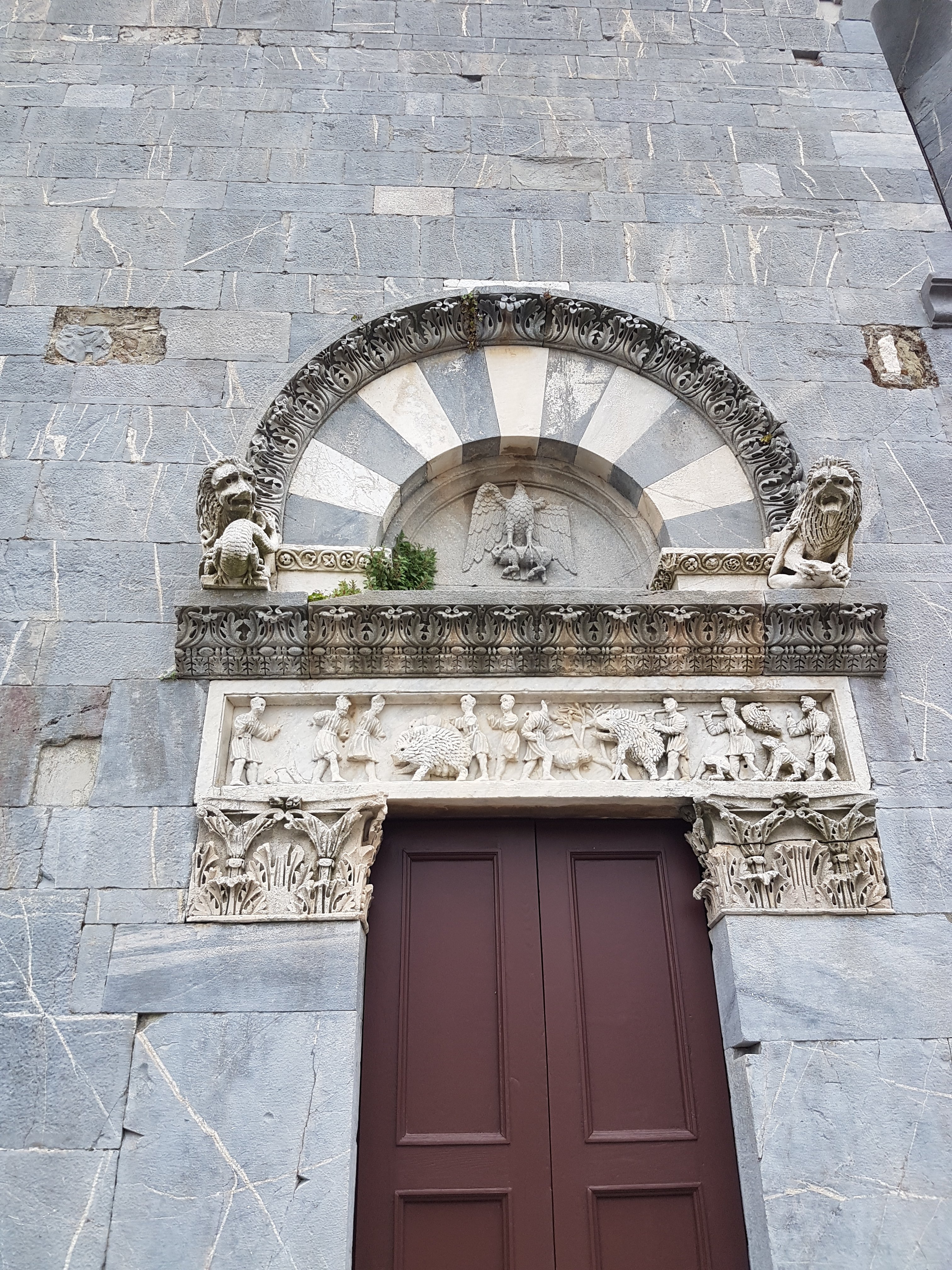 ROTAS te plutel con decorazione scolpita inscritta in cerchi o losanghe, di influenza pisana; all’ambiente pisano lucchese è del resto riconduci bile la maggior parte della decorazione dell’edificio.