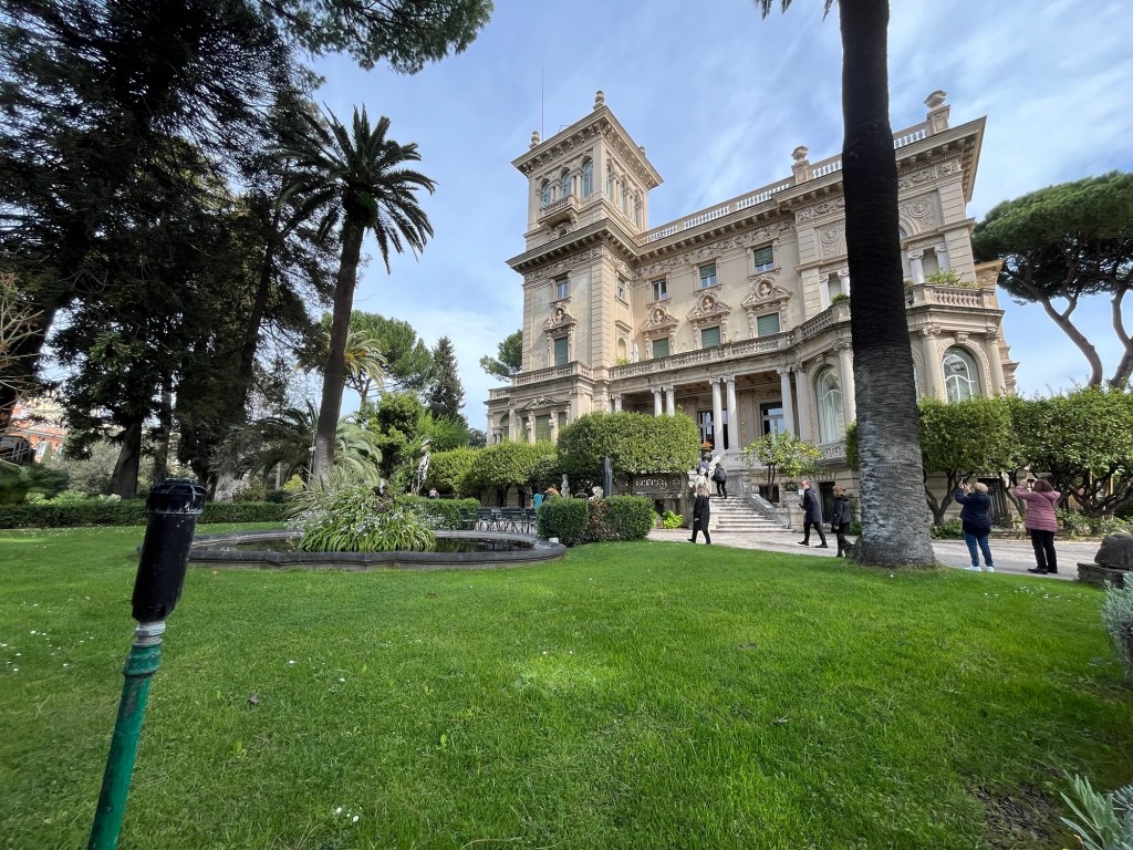 Nella visita ho avuto modo di ammirare una interessante mostra in sei splendide sale del pian terreno, ricche di colonne marmi e affreschi, fra le quali la particolare Sala da gioco, la ricca Sala da Pranzo e il bellissimo Salone da Ballo con il grande affresco sul soffitto realizzato da Giovanni Capranesi, in una sala oltre le opere ho potuto ammirare il grande scalone scenografico e monumentale realizzato con una balaustra in prezioso marmo lavorato con maestria, illuminato da una imponente finestra