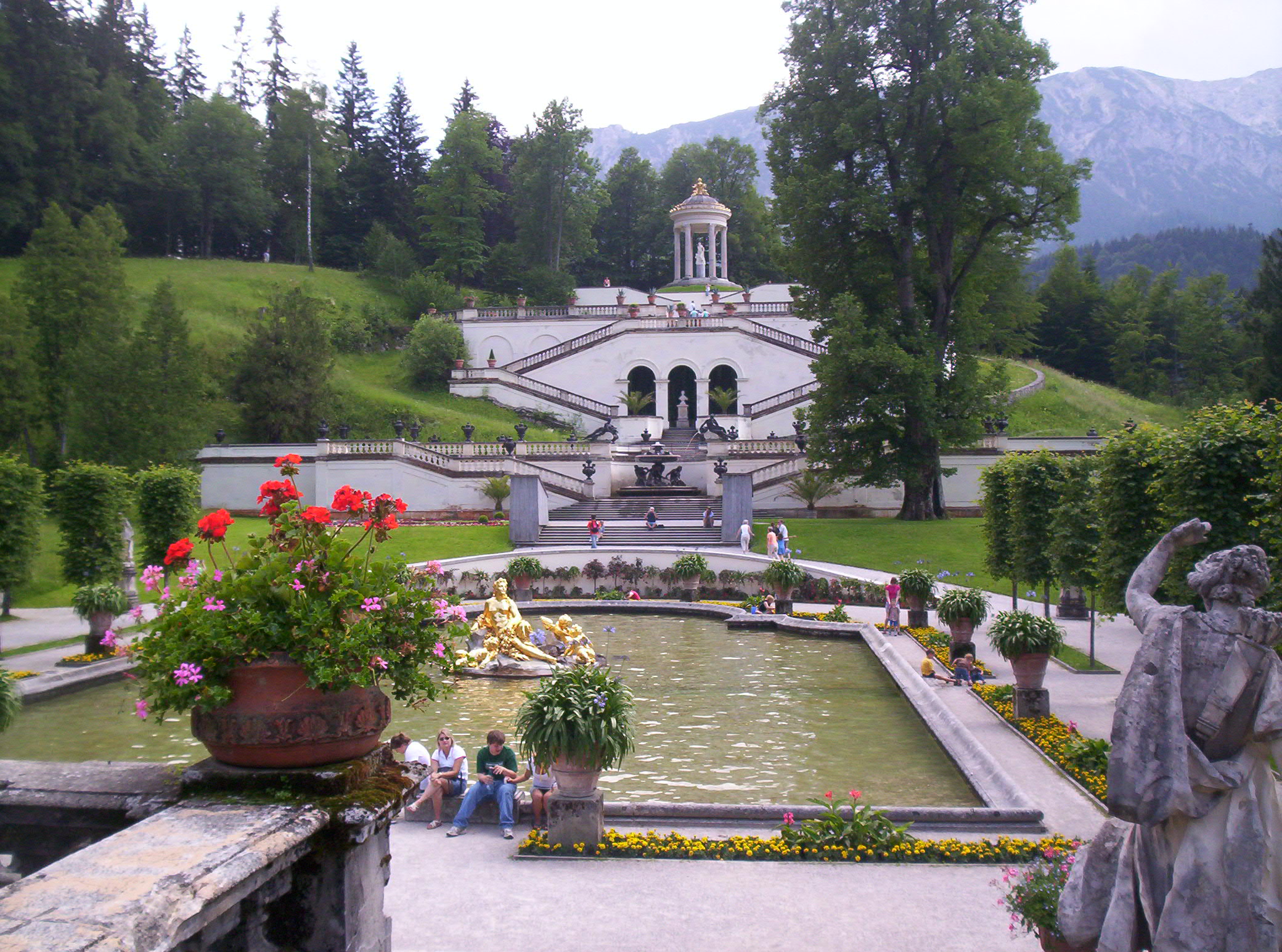 Linderhof , dista da Fussen una 50km circa,seguiamo le indicazioni dateci dall’ufficio informazioni direzione Reutte attraversiamo per un breve tratto l’Austria dove approfittiamo del prezzo piu’ basso del carburante per fare benzina.