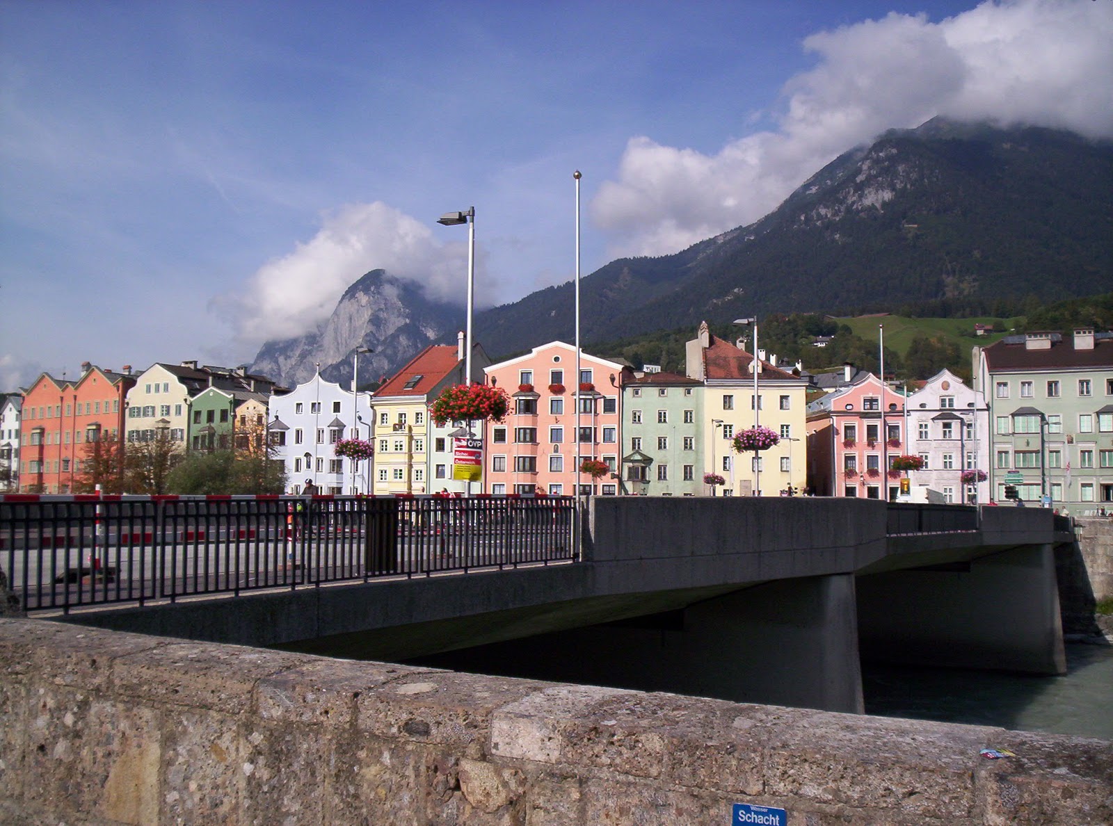 Raffigurati l’immacolata, S.Anna e i Santi protettori del tirolo Insieme all’arco di trionfo è l’attrazione principale della Maria Theresinen-strasse. Proseguiamo per la parte commerciale Helblinghaus abitazione borghese del XV sec.dal nucleo gotico.Intorno al 1730 la facciata fu decorata con stucchi tardo barocco da artisti di scuola di Wessobrunn. Oggi l’edificio ospita negozi. Proseguiamo fino al ponte che attraversa il fiume INN poi pausa al nostro Nordsee