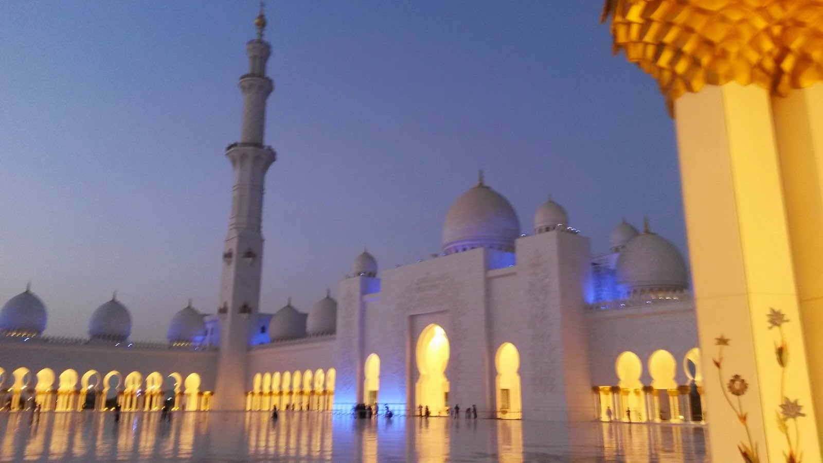 Esempio di architettura araba imponente e fastosa ricca di marmi italiani con il tappeto più grande del mondo e con un lampadario eccezionale . La visita all moschea vale la venuta in questa città. Le luci del tramonto rendono questo monumento quasi finto sembra di essere nella favola la lampada di Aladino. Ci vestiamo con il classico abito arabo per il rispetto delle tradizioni e scatti amo un milione di fotografie per immortalare questa meraviglia.