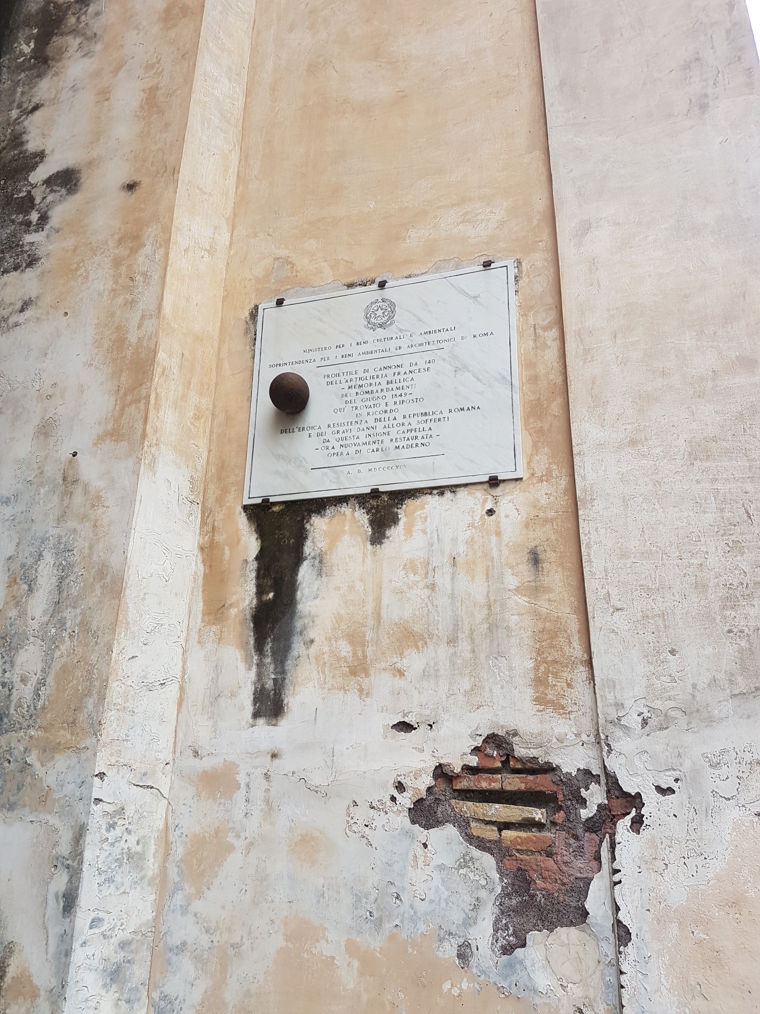 Affianco alle mura della chiesa l’ originale palla da cannone sparata dalle truppe Francesi.
