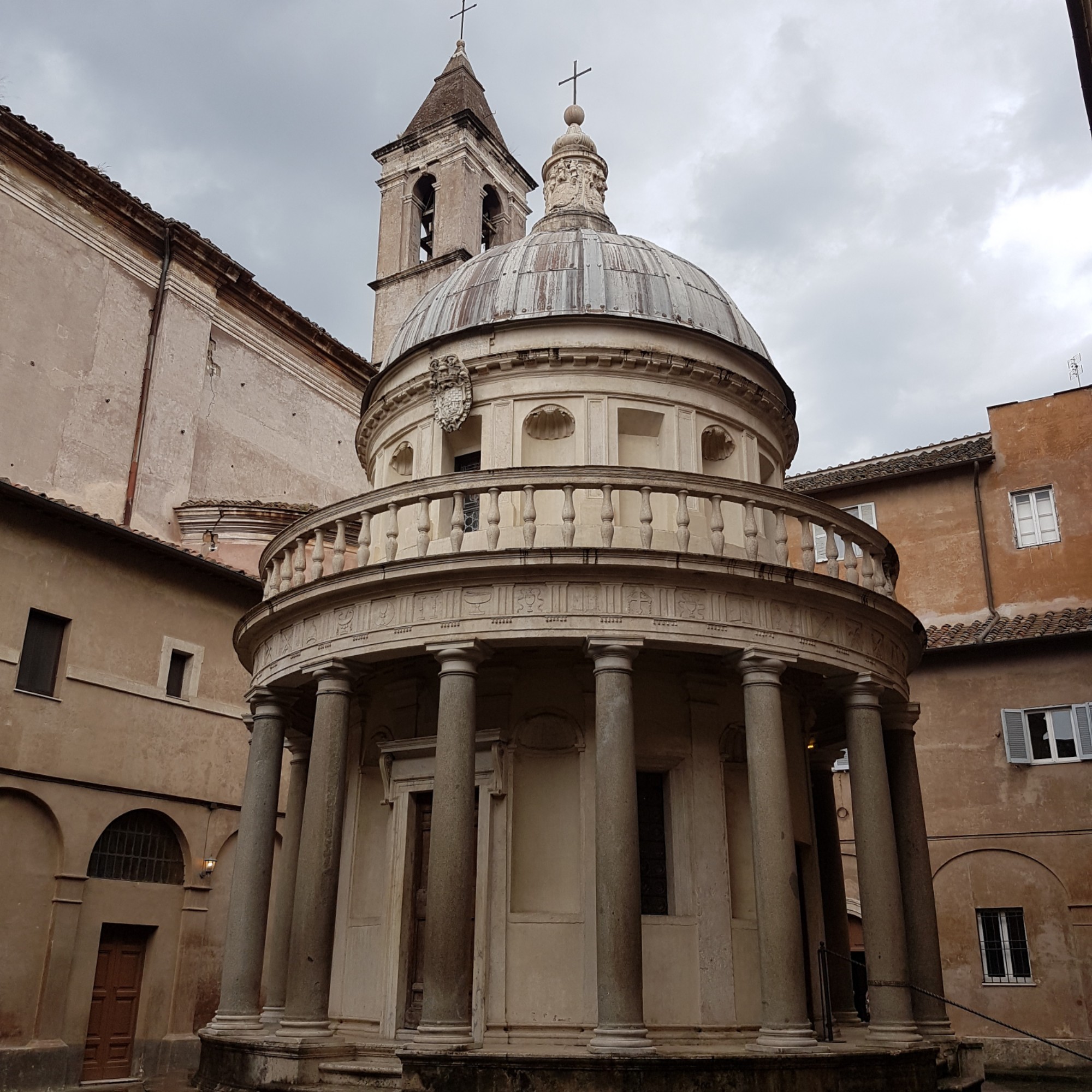 All’uscita della chiesa presso Accademia Reale Spagnola visitiamo il Tempietto del Bramante dove sembra sia stata fatta la crocifissione di Pietro.